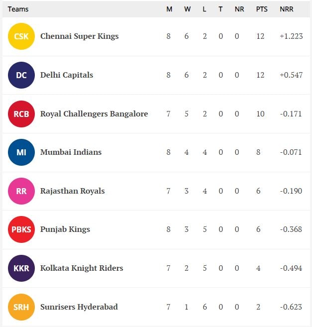 IPL 2021 Points Table. Check the latest IPL points table after match no. The fight is on.